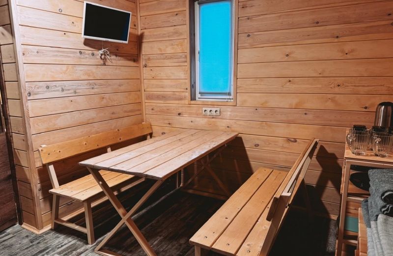 При гостевом доме работает банный комплекс, состоящий из двух бань, с комфортабельной зоной отдыха, душевой и ведрами для обливания. Также на территории оборудованы зоны BBQ, где после катания можно пожарить мясо или овощи на огне.