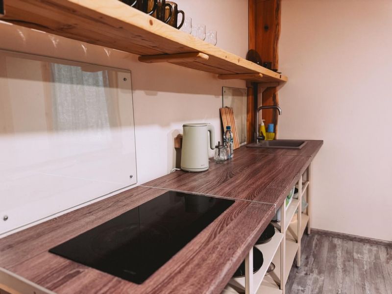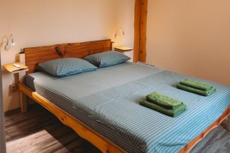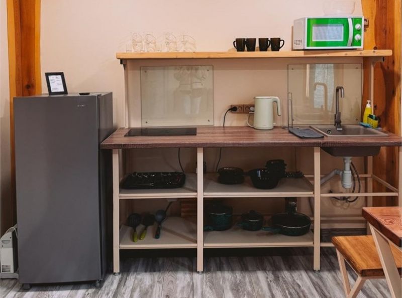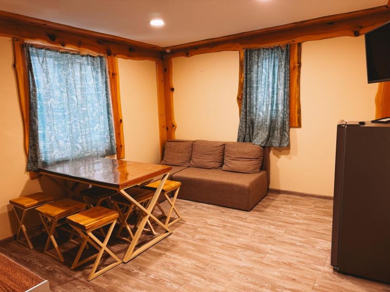 Гостевой комплекс представляет собой одно здание на 7 номеров, выполненное в стиле таунхаус. Для проживания предусмотрены стандартные и семейные номера, оснащенные всем необходимым. К услугам гостей двуспальные кровати и мягкие раскладные диваны, кухонная зона с бытовой техникой и посудой для самостоятельного приготовления еды, благоустроенный совмещенный санузел с душем.